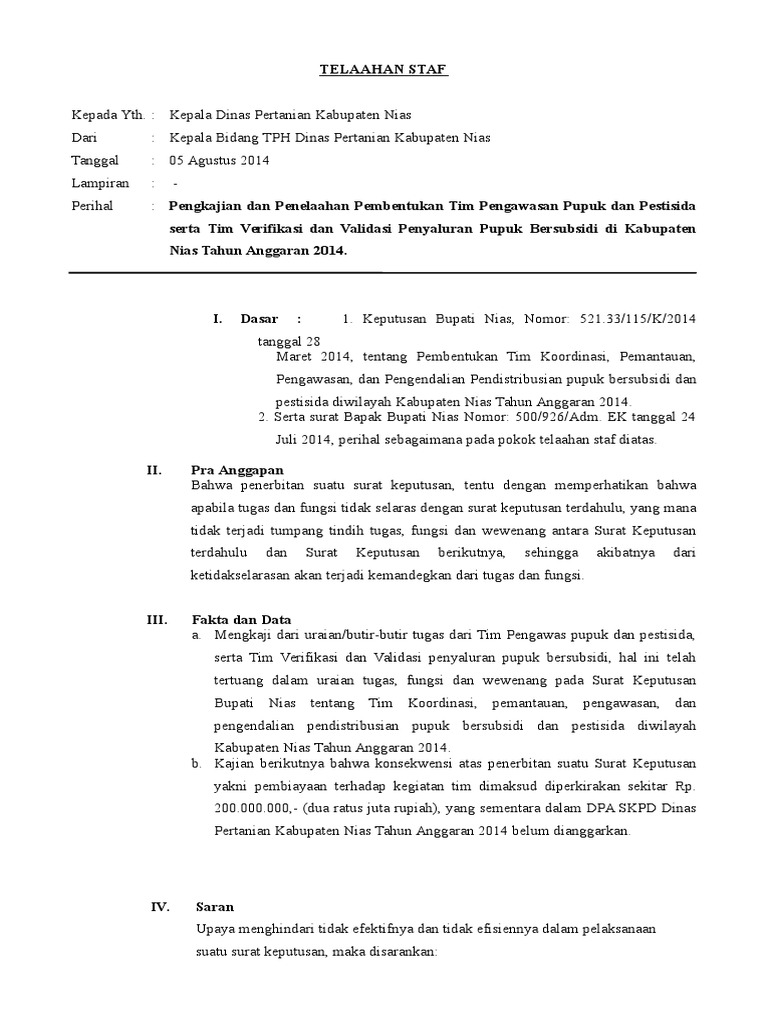 Pelaksanaan pembangunan dan pembinaan sosial kemasyarakatan. Sebenarnya hal hal yang diperlukan atau yang perlu disiapkan dalam membuat telaahan staf ini berbeda beda sesuai dengan peruntukannya. Pelaksanaan konsultasi kegiatan dak akan dilaksanakan pada. Langsung ke konten utama update tata naskah dinas telusuri. Berikut ini saya sertakan sebuah contoh singkat telaahan staf tentang perlunya dibuatkan aturan oleh pimpinan daerah tentang kebijakan mutasi tenaga kesehatan strategis. 22 22 mendukung.