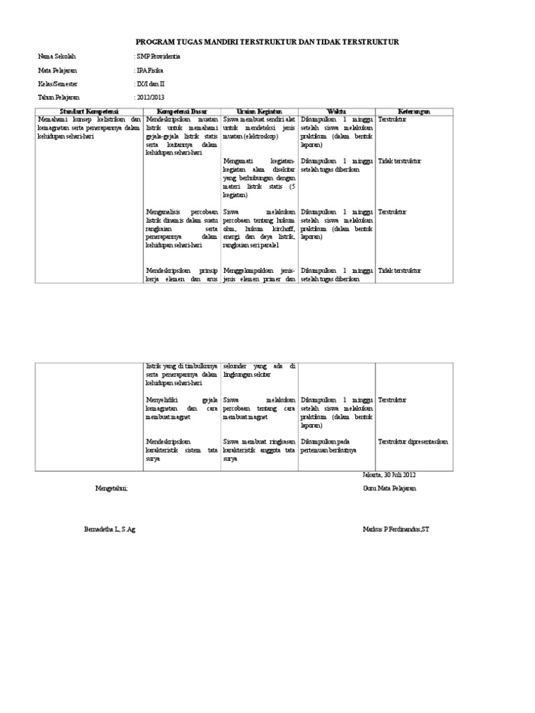 Contoh pelajaran seni maka bisa langsung siswa peragakan di depan kelas untuk terstruktur. Dan membuat wayang kulit tidak terstruktur dikumpulkan di hari lain alias bebas tapi di batasi waktunya. Contoh penugasan tersrtuktur dan mandiri tidak terstruktur kali ini blogadm pembelajaran menyajikan contoh penugasan terstruktur dan tidak terstruktur. Tugas mandiri terstruktur dan tugas mandiri tidak terstruktur di sini kami telah membagikan format dan bentuk yang sudah jadi dalam format office words barangkali yang membutuhkan silahkan dipilih pada menu berikut ini. Jadi kesimpulannya adalah kita sebagai pendidik jangan sampai memberikan tugas yang memberatkan siswa. Adapun instrumen yang harus dipersiapkan meliputi 5 komponen yaitu.