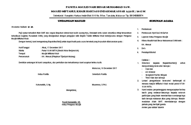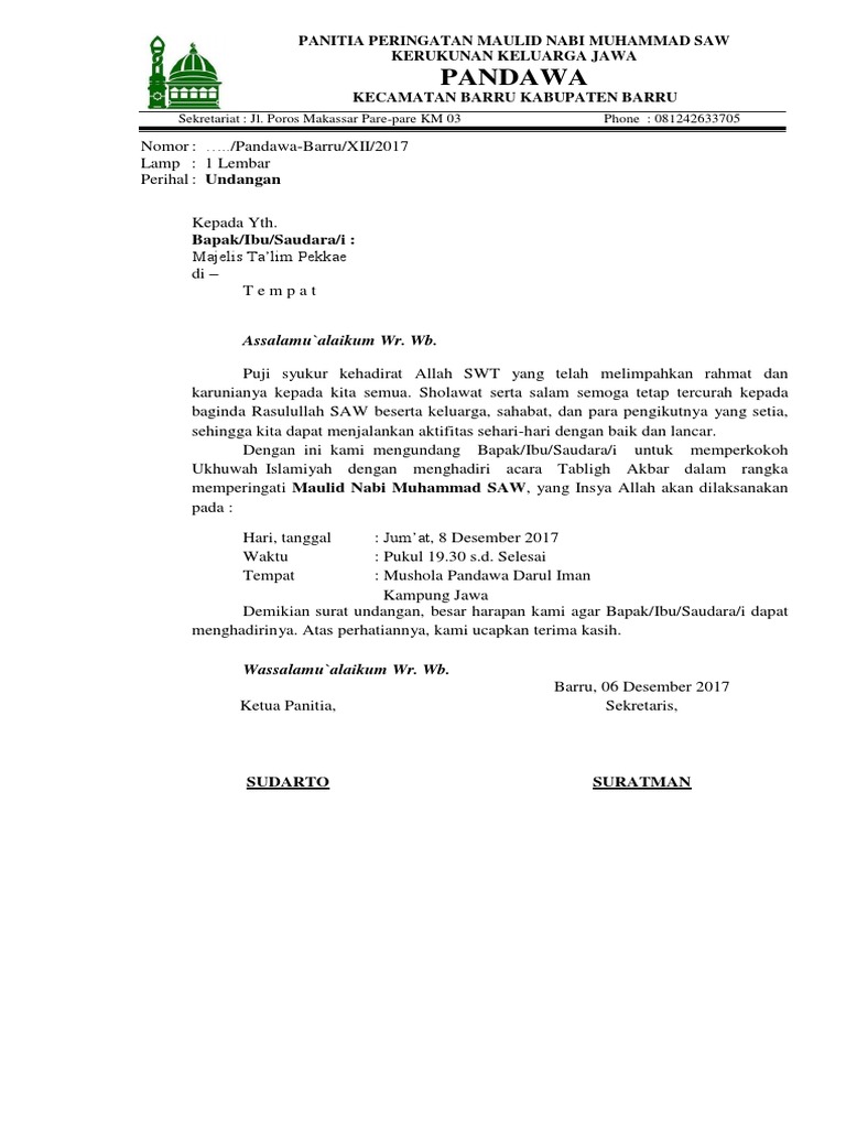 Maka dengan contoh surat undangan acara peringatan maulid nabi ini bisa menjadi wadah untuk bisa memanggil mereka semua untuk acara peringatan maulid nabi ini. Sekertariat remaja masjid nurul rahman tamanan kota bondowoso. Contoh surat undangan acara peringatan maulid nabi untuk anda semua yang ingin sekali untuk bisa memperingati hari maulid nabi tetapi bingung untuk bisa mengundang kerabat tetangga hingga semua orang di kampung tersebut. Viate contoh pesanan khusus 2 cv curriculum viate in addition contoh. Unknown january 25 2017 at 915 am saya merasa membantu sekali dengan contoh surat undangan maulid nabi muhammad saw seperti ini sangat bagus dalam penyampaiannya dan kata kata pembuka nya juga sangat mengesankan. Langsung saja berikut contoh contoh undangan maulid nabi muhammad saw terbaru 2014 yang berhasil saya kumpulkan dari berbagai sumber.