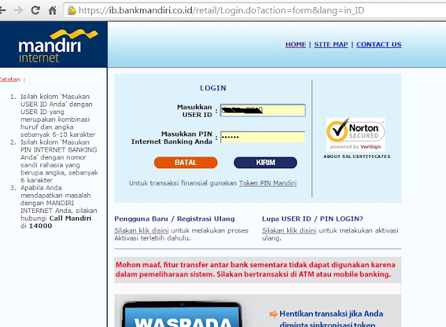 Please click here to activate your mandiri internet services. Fill in the column please enter your internet banking pin with the secret code number. Biasanya user id internet banking ini terdiri dari kombinasi huruf dan angka.