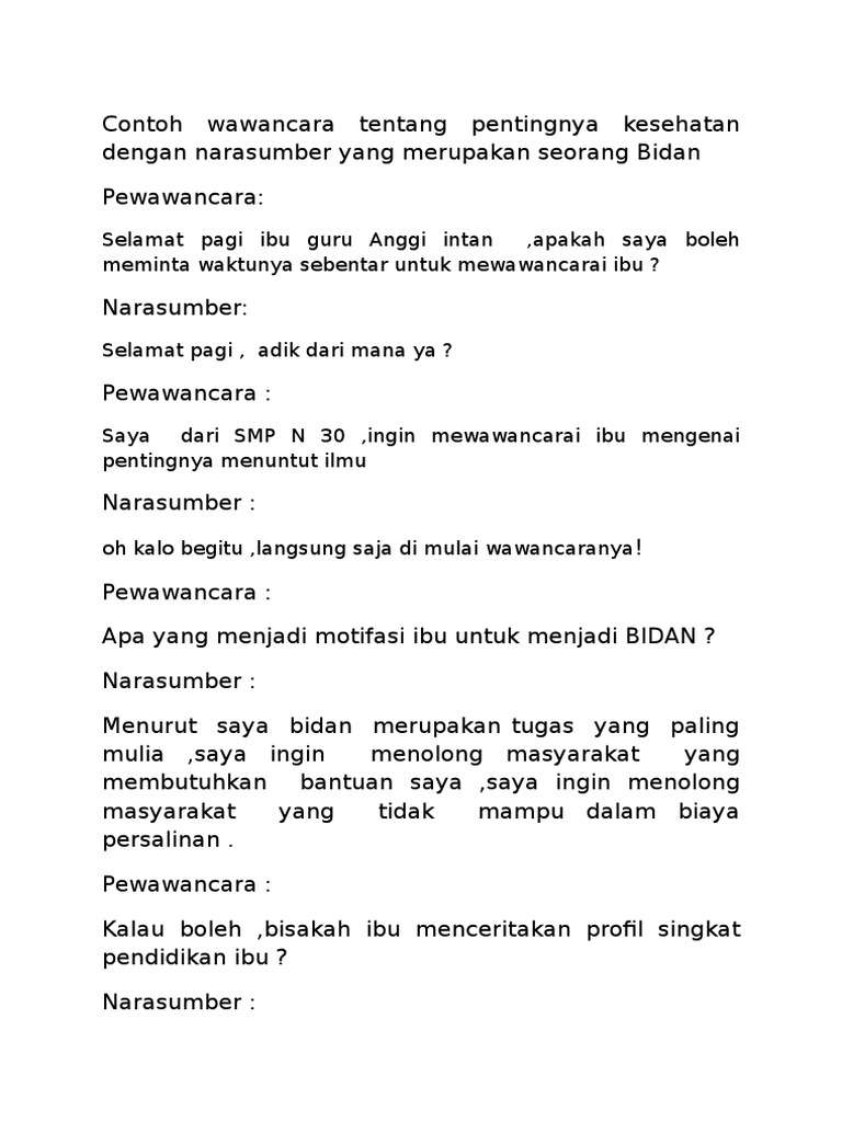 Tujuan dilakukan wawancara adalah untuk memperoleh informasi akurat dari narasumber yang terpercaya. Contoh teks wawancara tentang pendidikan terbaru teks wawancara adalah teks yang menyajikan sebuah percakapan antara pewawancara dengan narasumber. Dalam membuat teks wawancara ada beberapa hal yang harus diperhatikan. Dalam hal ini pewawancara bertugas untuk menggali informasi sedalam dalamnya berkaitan dengan tema yang diusung dalam kegiatan ini. Untuk pembahasan kali ini kami akan memberikan ulasan mengenai contoh karangan narasi yang dimana dalam hal ini meliputi contoh tentang pendidikan liburan lingkungan guru sekolah dan pengalaman pribadi nah agar lebih dapat memahami dan mengerti simak ulasan selengkapnya dibawah ini. Entah itu narasumber.